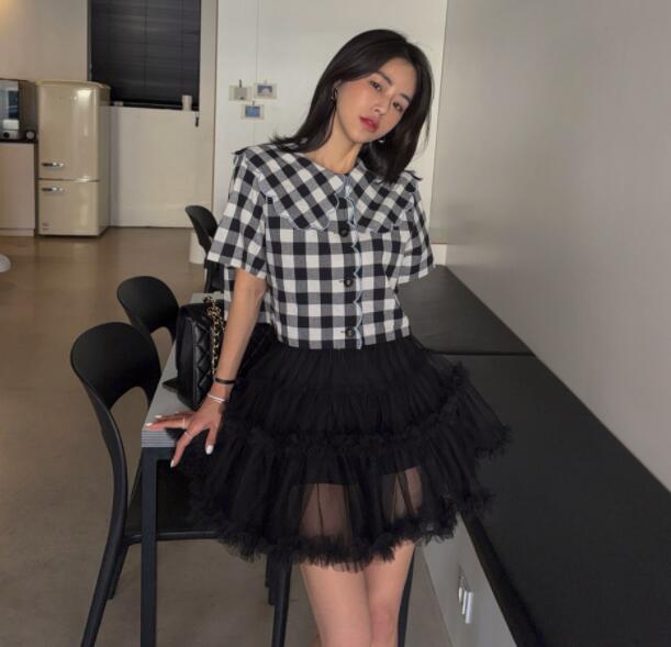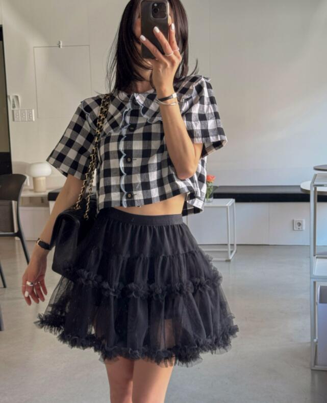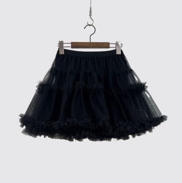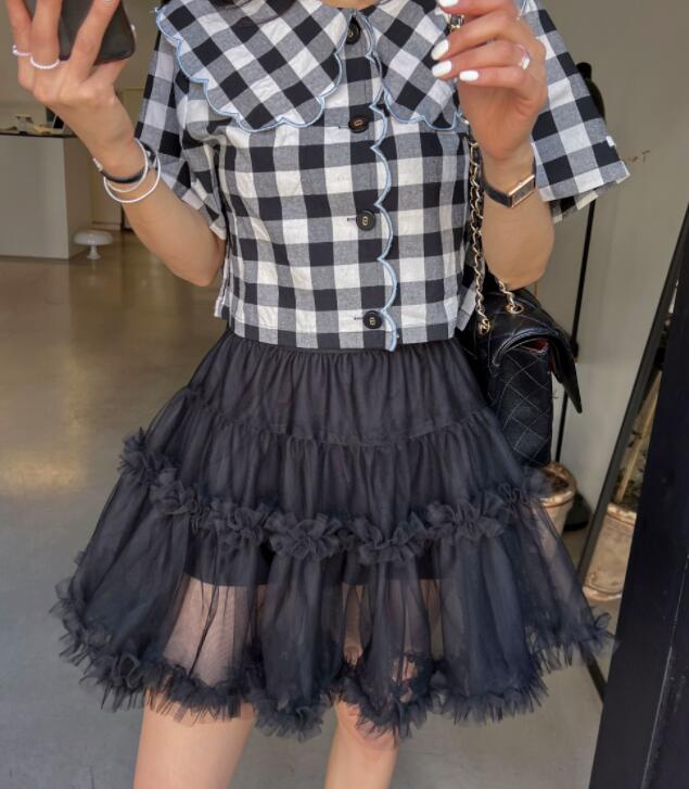 ふんわりと広がるチュール素材にレースとフリルをあしらった上品なミニスカート。