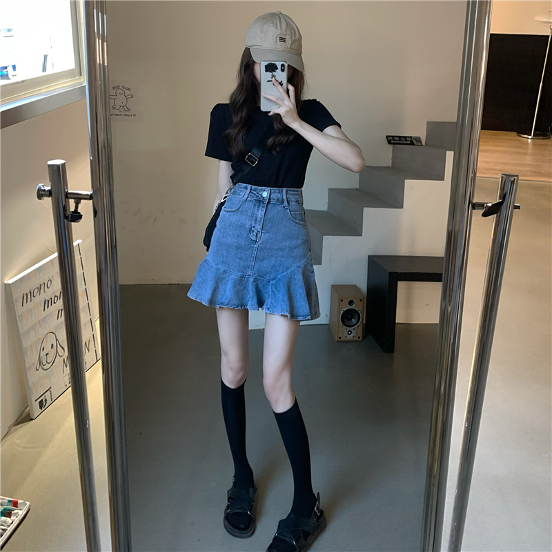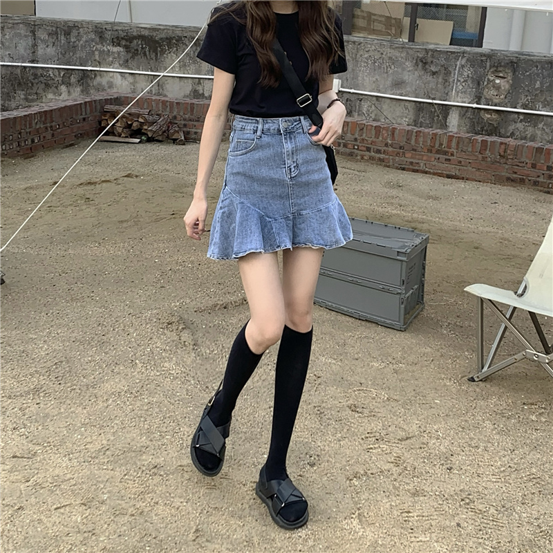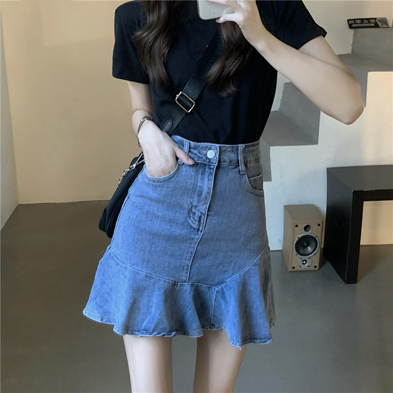 ハイウエストでスタイルアップ効果も抜群で、裾のフリル部分が女性らしさを演出します。